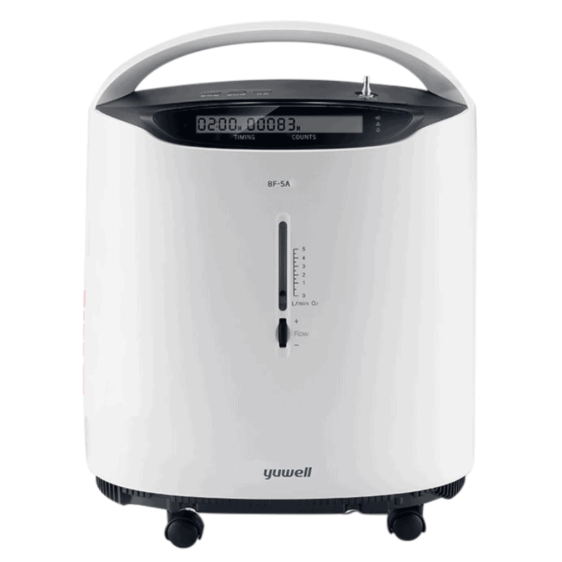 El concentrador de oxígeno Yuwell 8F-5A es una solución de oxigenoterapia suplementaria para adultos diseñada para uso en casa o en entornos profesionales de salud. Ofrece un flujo máximo recomendado de 5 L/min, concentración de oxígeno de 87% a 96%, operación continua, pantalla con temporizador y horómetro, además de un sistema de alarmas que ayuda a supervisar condiciones críticas de funcionamiento. Su diseño compacto, peso de 15.5 kg y manejo sencillo lo convierten en una excelente alternativa para pacientes y cuidadores que buscan un equipo confiable, práctico y seguro para terapia de oxígeno prescrita.