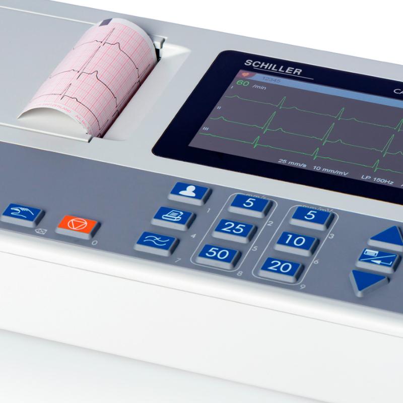 El SCHILLER CARDIOVIT AT-1 G2 es un electrocardiógrafo portátil de 3 canales y 12 derivaciones diseñado para brindar una operación simple, confiable y eficiente en consulta cardiológica, cardiopediatría, clínicas y áreas de urgencias. Su pantalla LCD a color de 5 pulgadas, la frecuencia de muestreo de 32,000 Hz por canal y su capacidad de interpretación automática lo convierten en una solución sólida para quienes buscan precisión clínica con un flujo de trabajo ágil.